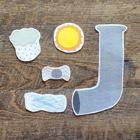 Grab the Alphabet Felt Set to add more learning through play. Practice identifying letters, letter sounds, and spelling! "Find all the pieces that start with S." "Can you spell 'sun'?" "Which letter does rain end with?"