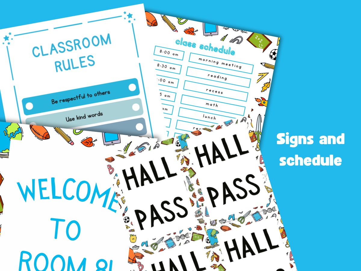 This set includes everything to run a pretend classroom, including: